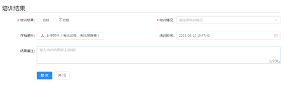 線下培訓完成后,由各位培訓教師填寫每位被培訓人員的培訓結(jié)果。培訓階段→管理培訓結(jié)果→選擇、填寫、上傳資料: