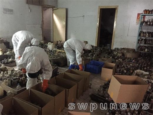 這批實驗室危廢物品是多年來的積累,數(shù)量較多、種類復(fù)雜,還有少量高毒劇毒試劑,相當(dāng)一部分標(biāo)簽風(fēng)蝕嚴(yán)重不易辨識。儲存和移庫過程中曾發(fā)生包裝老化破裂、漏液冒煙等危險狀況。由于南充校區(qū)不具備存儲危險品條件,加之各類試劑密集混放于一室,儲存時間長久,外包裝已日漸老化,極易自然破損,隨時都可能發(fā)生泄露、自燃、自爆、被盜等安全事故。