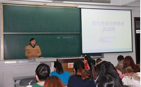 來自化學化工學院的大型儀器管理人羅米娜老師作為主講人,作了題為“現代色譜分析技術及應用”的專題講座。羅米娜老師從色譜法的概述、色譜法的應用(包括氣相色譜法和高效液相色譜法)、色譜定性和定量分析等方面進行了精彩講解,并以化工院在用熱點大型儀器設備“氣相色譜儀7890A”為例,列舉了大量應用案例,以具體、形象的實例演示幫助大家更好地了解色譜分析技術,合理選用色譜分離模式,學會運用色譜法解決實際問題。羅米娜老師的專題報告內容豐富、層次分明,講解深入淺出、親切生動,參加講座的同學們都被深深吸引,紛紛表示受益匪淺,加深了對現代色譜分析技術的認識和了解,對掌握這門實驗科學技能更有信心了。