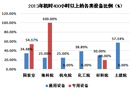 截至2014年6月,我校單價10萬元以上的大型儀器設備總量達到了678臺套,價值2.59億元,數量占學校設備總量的2.06%,價值占學校設備總值的52.64%,其中主要用于教學實驗、科學研究的大型儀器設備共計470臺,價值2.05億元。