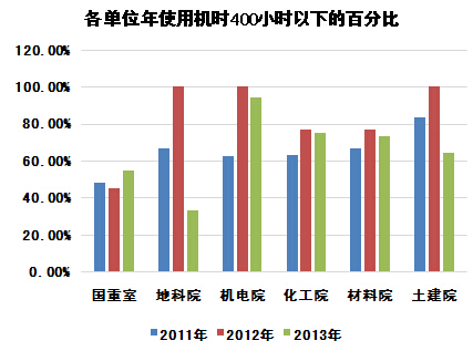 本學期對平臺設備近三年的使用情況、收費情況以及造成的原因進行了調研。2011-2013三年期間使用機時在400小時以上的設備僅40%左右,且每年均有部分設備的使用機時為0,具體情況如表1,逐一分析原因,不同的設備存在不同的問題,具體情況如表2。