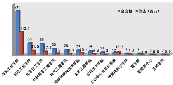 學校470臺大型儀器設備中已納入西南石油大學大型儀器設備“專管共享”管理平臺的共計163臺套,價值0.99億元,數量占教學、科研大型儀器設備總量的34.68%,價值占教學、科研大型儀器設備總值的48.29%。