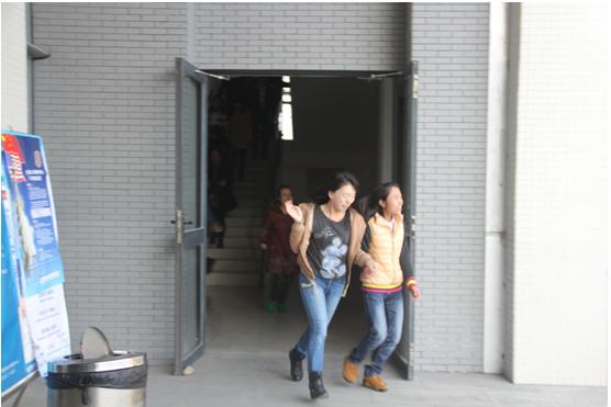 教師引導學生從安全出口疏散撤離