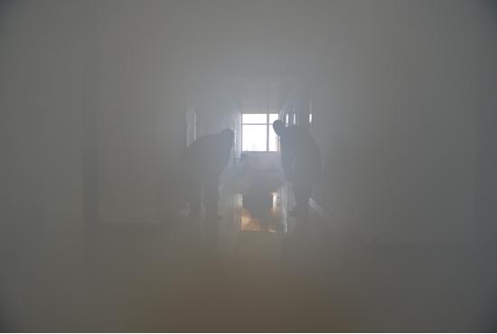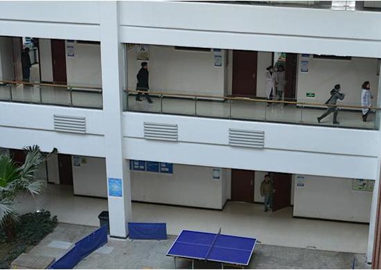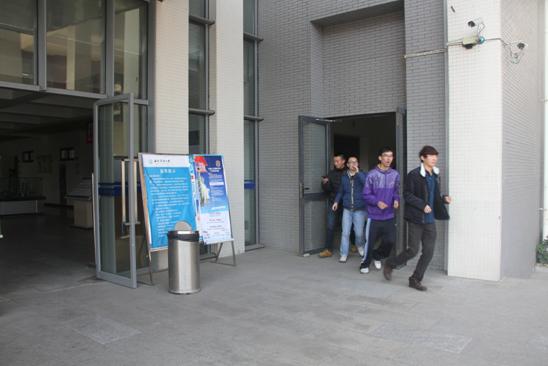 警報響起后明德樓內人員開始疏散