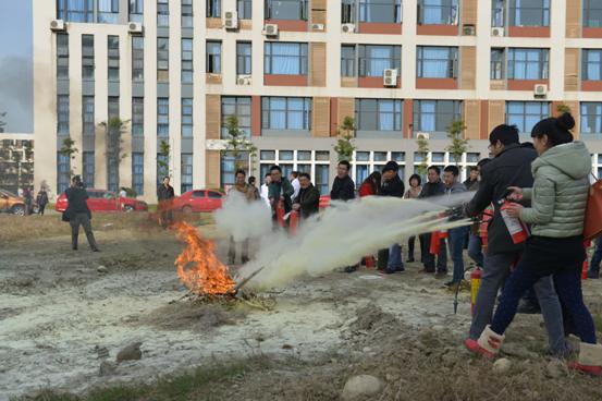 最后,參訓人員集體來到明理樓南面空地處,消防科劉老師從滅火器分類、用途、正確的操作方法與程序等方面給大家進行了詳細的講解,并指導大家進行各類滅火器的使用演練,對模擬火災進行了有效撲救。