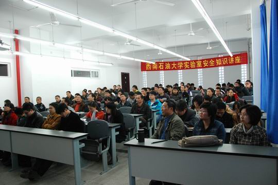 2011年11月15日下午4:00,由設備與實驗室管理處、保衛(wèi)處聯(lián)合舉辦的2011年度實驗室安全培訓在成都校區(qū)明德樓A401室舉行。成都校區(qū)未參加過實驗室安全培訓的實驗室工作人員、從事與化學相關方面工作的實驗技術人員和教師、在實驗室進行研究工作的研究生以及實驗樓安保人員共150余人參加了培訓。此次培訓旨在進一步提高實驗室工作人員及相關人員的安全防范意識和責任感,學會使用各類滅火器材,掌握撲滅初期火災的基本技能,確保我校教學、科研工作順利進行。