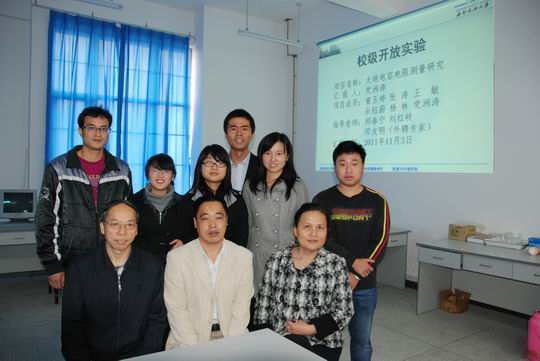 獲一等獎項目“地層流體電容率變化規(guī)律研究”結(jié)題匯報后師生合影