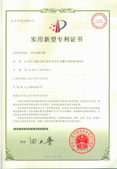 《車用砸玻璃逃生錘的設計、制作》成果實用新型專利