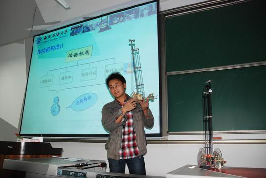 獲二等獎項目“家庭安防機器人的設計與制作”學生做演示匯報