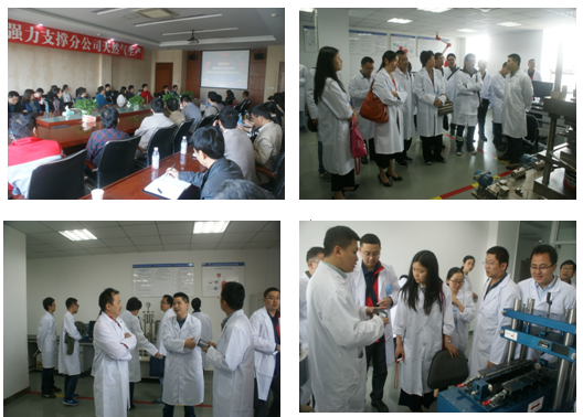 會議分兩個階段進行。第一階段,工程技術研究院鉆井液評價實驗室、采氣工藝實驗室和油氣井增產技術實驗室負責人分別從實驗分室的基本情況、實驗室主要設備及實驗能力、實驗室設備管理、科研生產、人才培養和隊伍建設、實驗室安全管理等方面進行全面介紹。第二階段,實驗中心按照人員的研究方向和分管的設備性質進行分組參觀。老師們在參觀過程中不時就實驗方法、測試手段、設備改進和安全管理等方面與工程技術研究院的技術人員進行深入交流和探討。