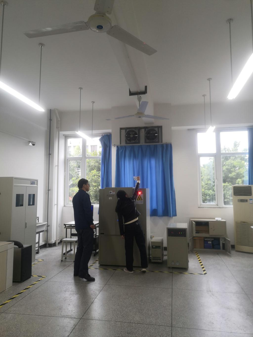 學校的X射線衍射儀、X射線顯微鏡分布于明德樓A118,B212,國家重點實驗室A207,B109,放射源放置于明理樓C704,C705。此次檢測,工作人員秉承著認真負責的態度,對X射線儀等場所四周進行細致檢查,確保不漏掉任何死角,保證檢查結果的科學有效。