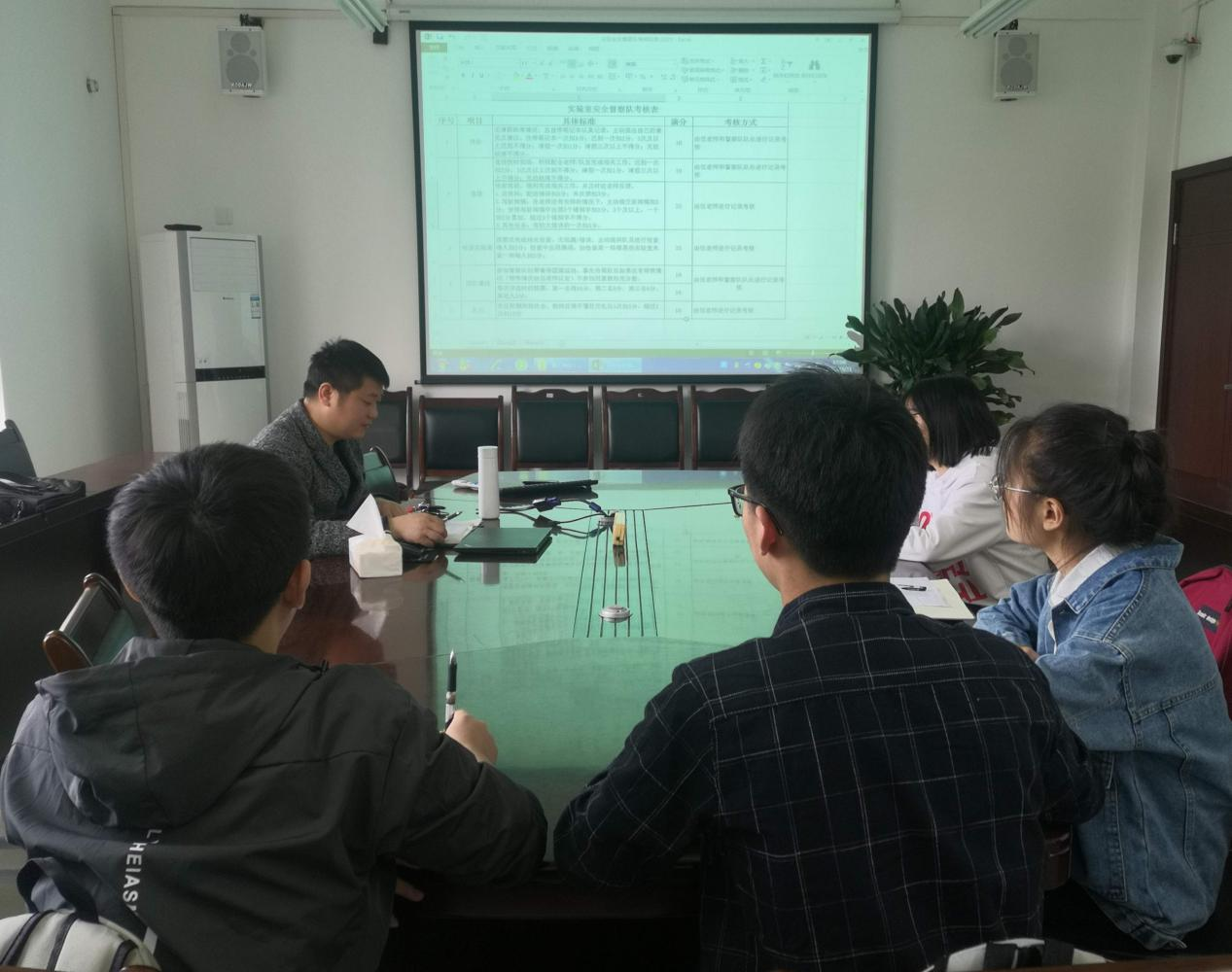 會議上,伍老師首先安排了本學期的工作內容,包括工作項目和工作時間段,將工作細化分解;同時宣布了本學期的考核方式,考核內容包括例會、值班、檢查實驗室、團隊建設和禮儀五方面,由伍老師和實驗室安全督察隊隊長對隊員們進行全方面的考核。此外,伍老師表示新學期應更加認真工作,形成團結干事成事的好環境。