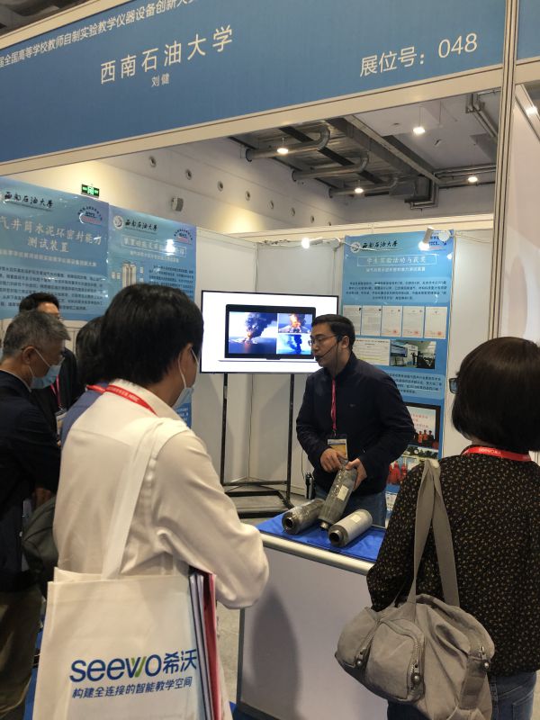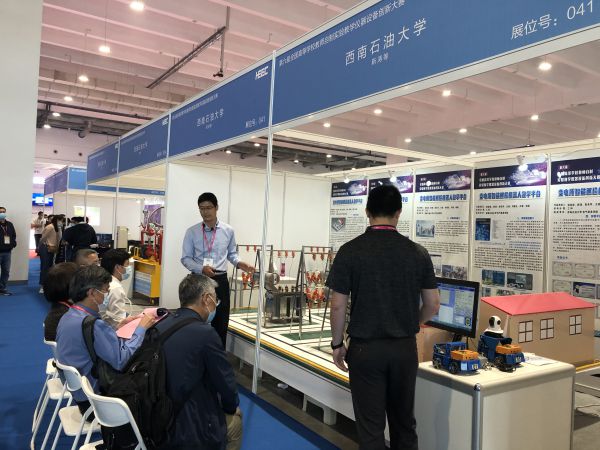 本次大賽于2020年7月啟動,經過初賽網評,全國144所高校的351項作品進入總決賽。我校共推送10項作品參賽,6項進入總決賽展示。在決賽中,自由設計類分7個組,我校與清華大學、武漢大學、華中科技大學、哈爾濱工程大學、海軍工程大學、西安理工大學分在同一組,競爭異常激烈。經過專家組現場考察以及答辯等環節,我校6個項目獲得三等獎,分別是:王永友負責研制的“基于VR的多人協同鉆井模擬系統”、龔彥負責研制的“離心泵性能測試多功能實驗臺”、王其軍負責研制的“具備圖像處理功能的接觸角(潤濕角)測定儀”、靳濤負責研制的“電子電氣控制類創新實驗平臺”、張安安負責研制的“變電所智能巡檢機器人教學平臺”、劉健負責研制的“一種固井水泥環封隔能力動態測試裝置”。