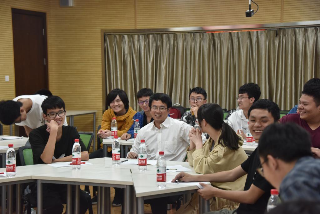 晚上19時20分,趙正文走進班會軟工專業2018級5班的班會教室,同學們全體自發起立,熱烈鼓掌歡迎,趙正文也向大家揮手致意,頻頻問好。班級主題班會由班長王儷穎主持。在嘉賓介紹環節,趙正文老師自報家門,強調是自己曾在計科院工作,跟大家“本是同根生”,既是大家的專業課老師,更是大家的大師兄,他希望自己能成為軟工1805班的一份子,趙老師詼諧幽默的一席話瞬間引得現場歡聲笑語不斷,瞬間拉近了師生間心的距離。