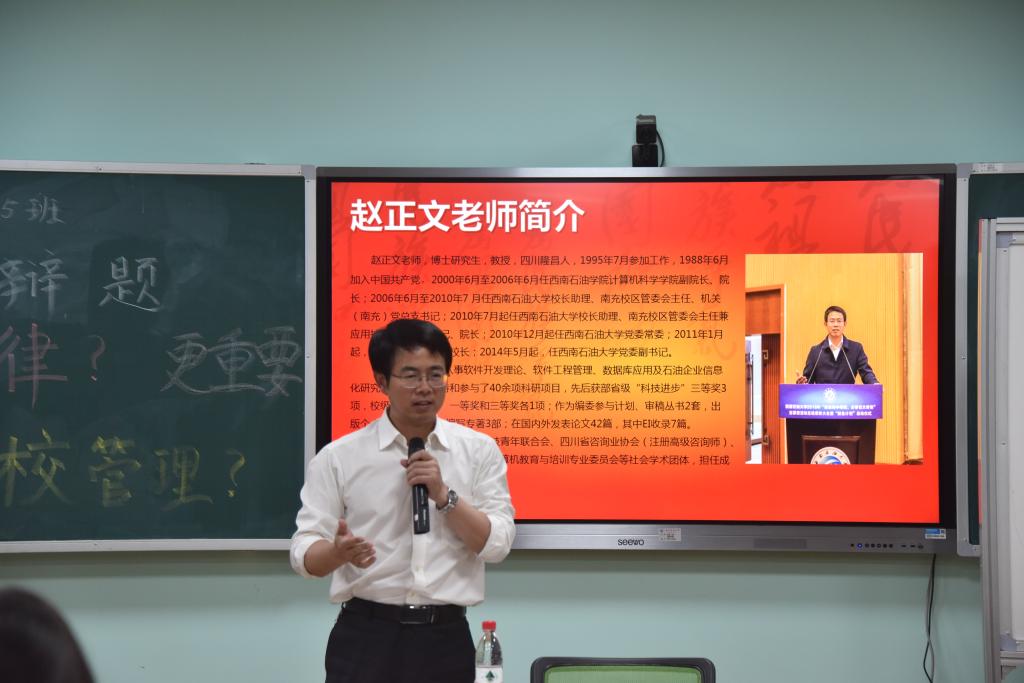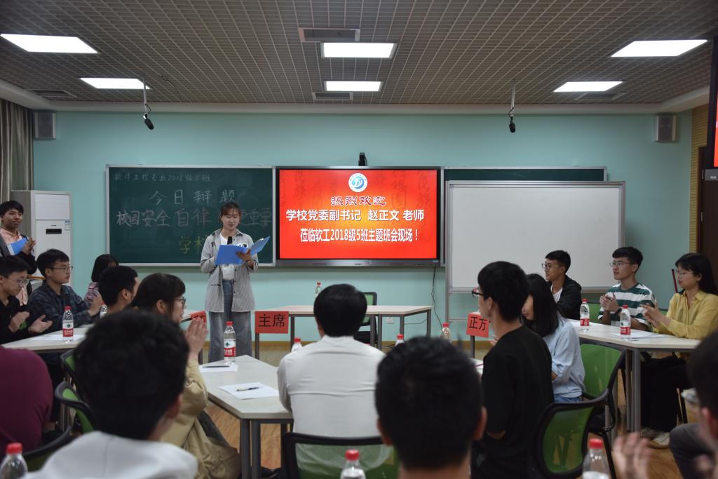 2019年5月9日晚,計算機科學學院軟件工程專業2018級5班迎來了一位 “特殊嘉賓”和”專業課老師”——學校黨委副書記趙正文。原來,趙正文是與軟工專業2018級5班結成了對子,指導和幫助班級開展工作,與同學們一道交流學習。在當晚,他應班級同學之邀參加該班的辯論賽主題班會。