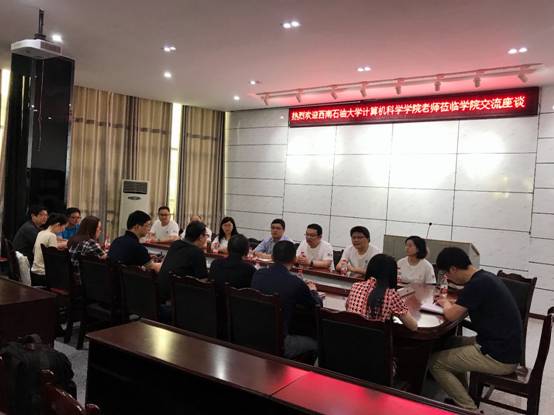 下午4:00,在西華師范大學計算機學院理科綜合樓B402,龔院長一行和西華師范大學計算機學院黨委書記王朝斌、黨委副書記、紀委書記汪潛、副院長賴曉風、副院長潘偉以及學院主干老師進行了交流,雙方就研究生招生培養(yǎng),學科建設發(fā)展,人才引進,教師提升等問題進行了深入的探討。會后,龔捷一行對西華師范大學有志報考我校的學生進行了現(xiàn)場講解和答疑。