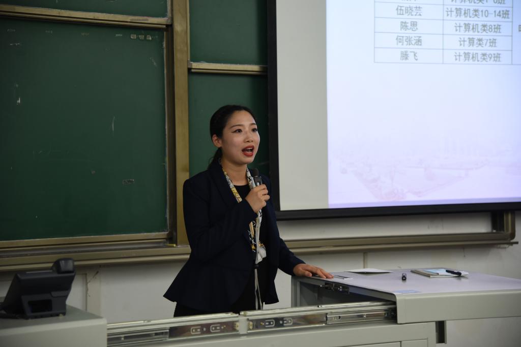家長會第二項,五位新生輔導員楊烽、伍曉蕓、陳思、何張涵、滕飛分別上臺進行自我介紹,他們承諾必將竭盡全力教育和幫助各位家長的孩子,引領學生們在計科院勤奮學習、快樂生活直至成長成才。