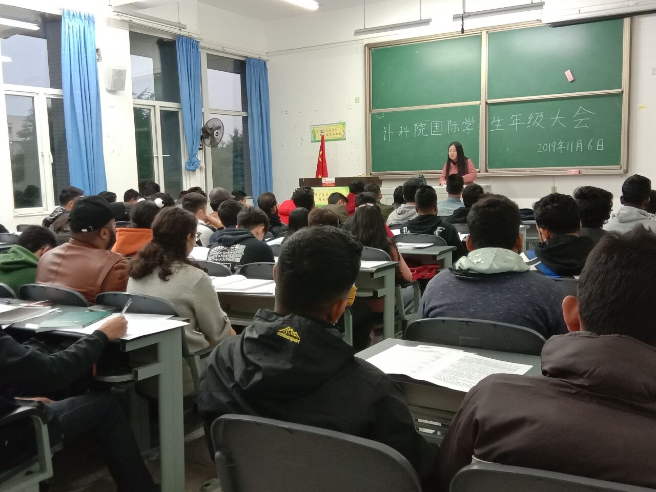 11月6日,計科院2019年秋季學期第二次國際學生年級大會在明理樓B201召開。學院全體國際學生參加了此次會議,會議由兼職輔導員陳思主持。