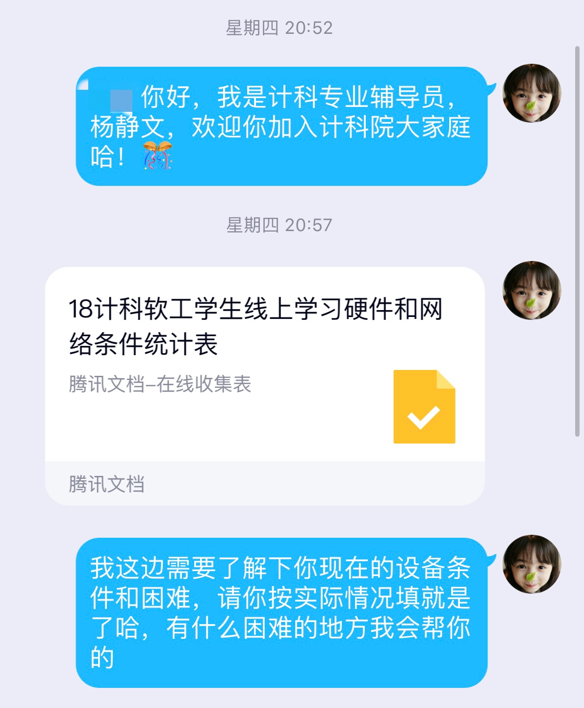 為將“停課不停學(xué)、線下轉(zhuǎn)線上”的抗疫教學(xué)實(shí)施目標(biāo)落到實(shí)處,計(jì)科院本著“一個(gè)都不能少”的宗旨,認(rèn)真細(xì)致地開展了學(xué)生的學(xué)業(yè)銜接和教學(xué)準(zhǔn)備工作。學(xué)院教學(xué)和學(xué)工聯(lián)動配合,對全院六個(gè)專業(yè)四個(gè)年級在讀學(xué)生,以及2018級、2019級轉(zhuǎn)專業(yè)學(xué)生就學(xué)習(xí)的硬件條件、網(wǎng)絡(luò)條件等情況行了全方位的摸底。截止目前,共計(jì)摸底學(xué)生2030人,僅有1人存在“無網(wǎng)絡(luò)”的特殊情況,其余均具有參與在線教學(xué)模式的硬件條件。通過本次工作的開展為下一步具體實(shí)施在線教學(xué)提供了有利支撐。