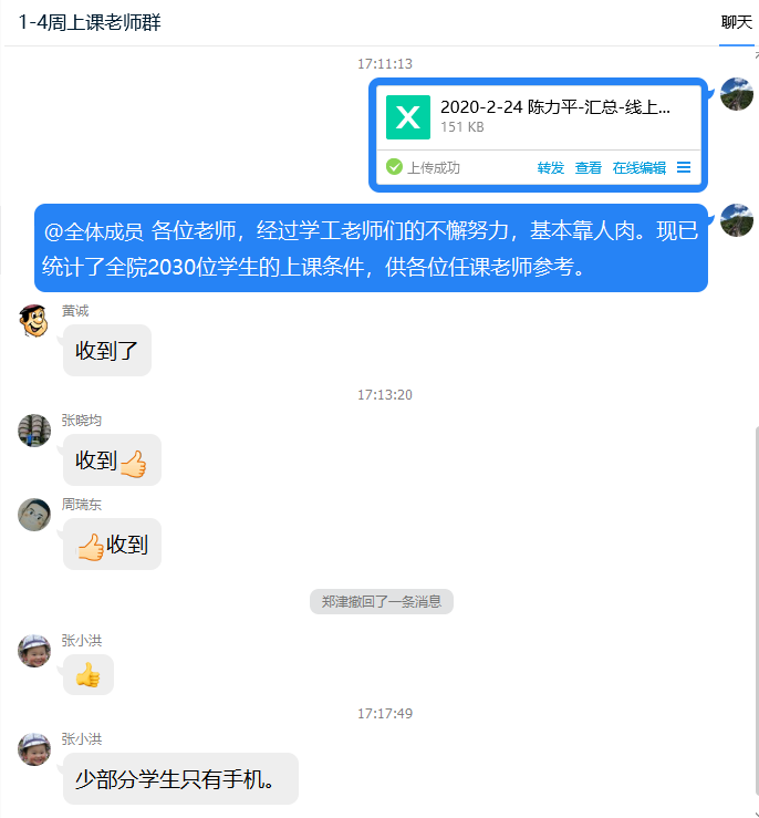 學(xué)院在應(yīng)對疫情防控期間本科畢業(yè)設(shè)計(jì)工作上,于2月6日出臺了“關(guān)于做好疫情防控期間畢業(yè)設(shè)計(jì)指導(dǎo)工作的通知”。通過學(xué)院網(wǎng)站、QQ群、釘釘群傳達(dá)到每一位指導(dǎo)教師。截止2月10日完成了2016級4個(gè)專業(yè)學(xué)生的情況摸底。學(xué)生情況摸底數(shù)據(jù)分發(fā)給了畢業(yè)設(shè)計(jì)指導(dǎo)教師,以助力教師有針對性的開展指導(dǎo)工作,同時(shí)也提供給了學(xué)生工作辦公室,幫助輔導(dǎo)員老師更好的掌握大四學(xué)生基本情況。
