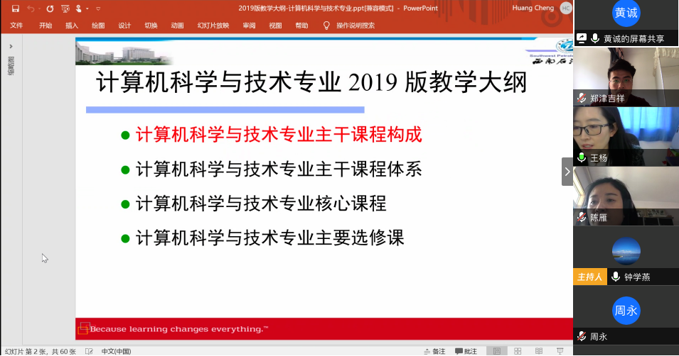 3月13日下午,教學院長劉忠慧進行了計算機類課程的教學大綱匯報。丁鵬老師對計算機公共基礎課程的教學大綱進行了匯報。