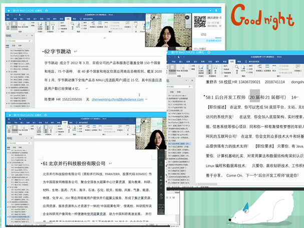 近四個小時的校招職位線上直播,上千個崗位的“帶貨”,下半場主要由王楊接手。她通過十分細致的崗位介紹和相當精彩的線上互動,給各位同學帶來了滿滿的“干貨”,YOCSEF成都希望畢業生們能把握住就業機會,認清個人核心競爭力,強調做到“從畢業,到就業”兩步走戰略。