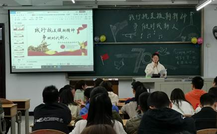 在視頻觀看環節,《可歌可泣的抗美援朝》中的一句“我們今天做的事情,以后有沒有人記得”令在場的每一位同學都為之動容;《抗美援朝始末》讓大家重溫了那段艱辛又偉大的歷史,認識了那個時代的數位英雄。《紀念抗美援朝70周年大會》更是讓在座同學們知道,我們的國家、我們的民族沒有忘記他們,他們永遠是中華兒女心目中最可愛的人!