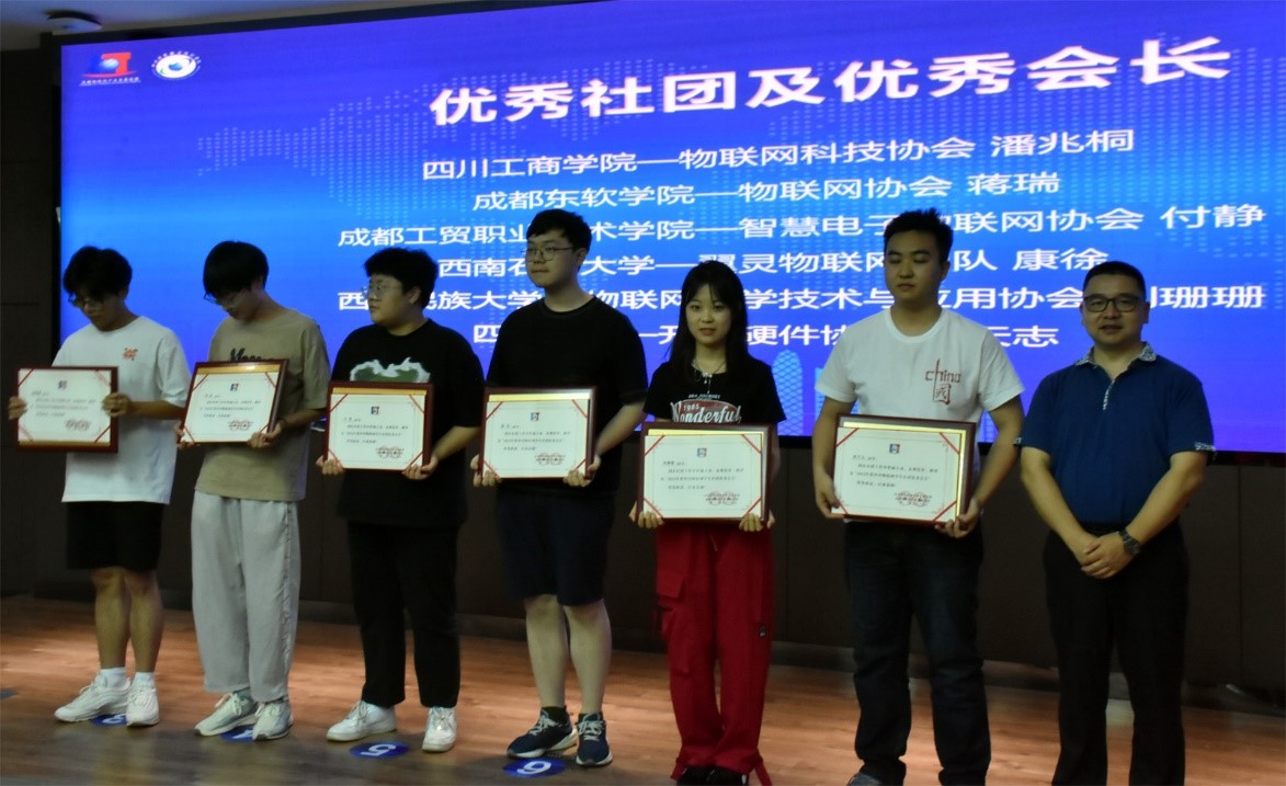 此外,物聯網產業聯盟的本次活動,共評選出6個“2022年度優秀學生社團”和6個“2022年度優秀物聯網學生社團會長”。我院翼靈物聯網學生團隊與四川大學、西南民族大學等6個社團獲“2022年度優秀學生社團”榮譽稱號,社團會長康徐同學獲得“2022年度優秀物聯網學生社團會長”稱號。翼靈物聯網學生團隊,目前由梁宗文博士負責指導,自2013年以來,累計獲得學科競賽榜國家級獎項10項、省級以上獎項38項,大學生創新創業項目立項國家級4項、省級11項,發表論文20余篇,申請軟件著作權和實用新型發明專利20余項。