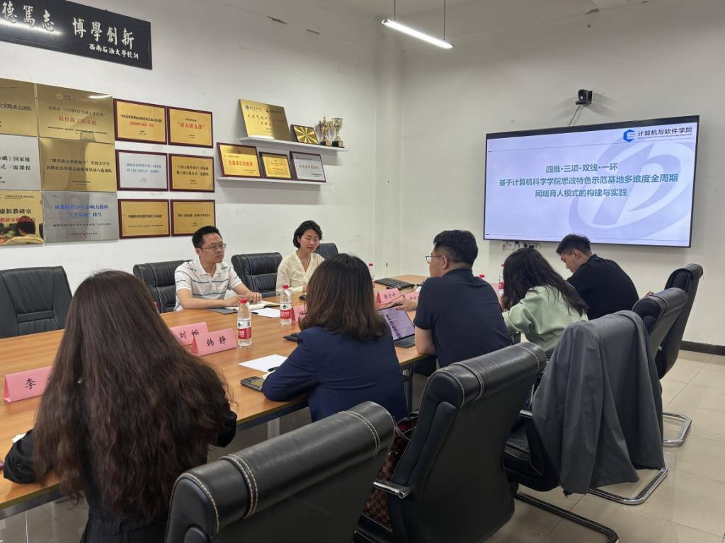 學院黨委副書記、紀委書記劉翔,團委書記、學生工作辦公室主任陳力平,兼職輔導員劉暢參加座談。座談會上,劉翔對司占軍一行來院調研指導表示熱烈歡迎,陳力平就學院“基于多維度全周期網絡育人模式的構建與實踐”與“一站式就業育人微社區建設”等方面向司占軍一行進行了總體介紹。雙方就黨建與事業發展雙融雙促的經驗做法、思政教育工作的經驗做法與特色活動、計算機交叉學科建設的經驗做法、科研團隊建設的經驗做法等方面進行了互助交流。