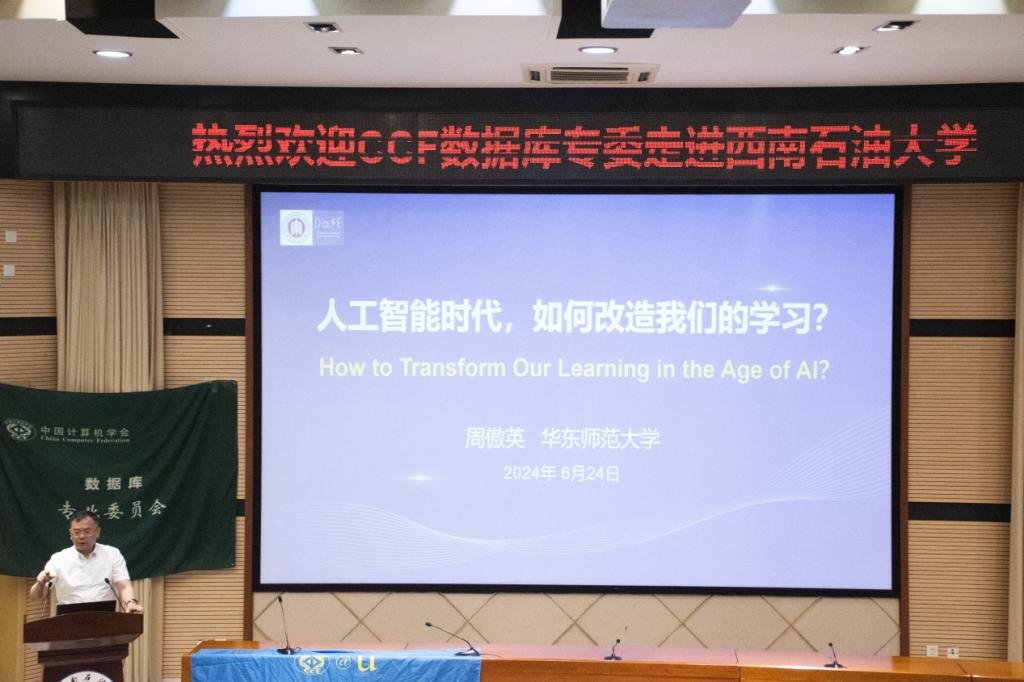 6月24日,中國計算機學會CCF數據庫專委會走進西南石油大學,成功舉辦以 “數據賦能AI時代的在線教育變革”為主題的“CCF走進高校”系列活動。校黨委常委、副校長祝效華受邀參加此次活動,與華東師范大學原副校長、第八屆國務院學科評議組成員、中國計算機學會數據庫專委會主任周傲英教授等專家、學者進行了多方位深入交流。