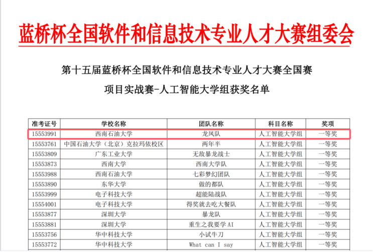 “藍橋杯”全國軟件和信息技術專業人才大賽,由工業和信息化部人才交流中心連續成功舉辦十五屆,已成為中國高等教育學會認證的權威賽事。該賽事旨在激發學生的創新意識,提高工程實踐能力,為我國的制造強國和網絡強國戰略注入新的人才活力。人工智能項目實戰賽要求參賽者不僅擁有深厚的人工智能基礎,還需展現出色的實踐能力,完成從數據預處理到模型應用部署的全流程。這場4小時團隊賽,每隊由3名選手組成,強調團隊協作,并在無網絡環境下進行,能運用指定工具和庫解決AI難題,考驗參賽者的綜合素質。我院師生在此次大賽中首秀即獲佳績,凸顯了我院在人工智能相關學科及競賽領域的突出優勢。