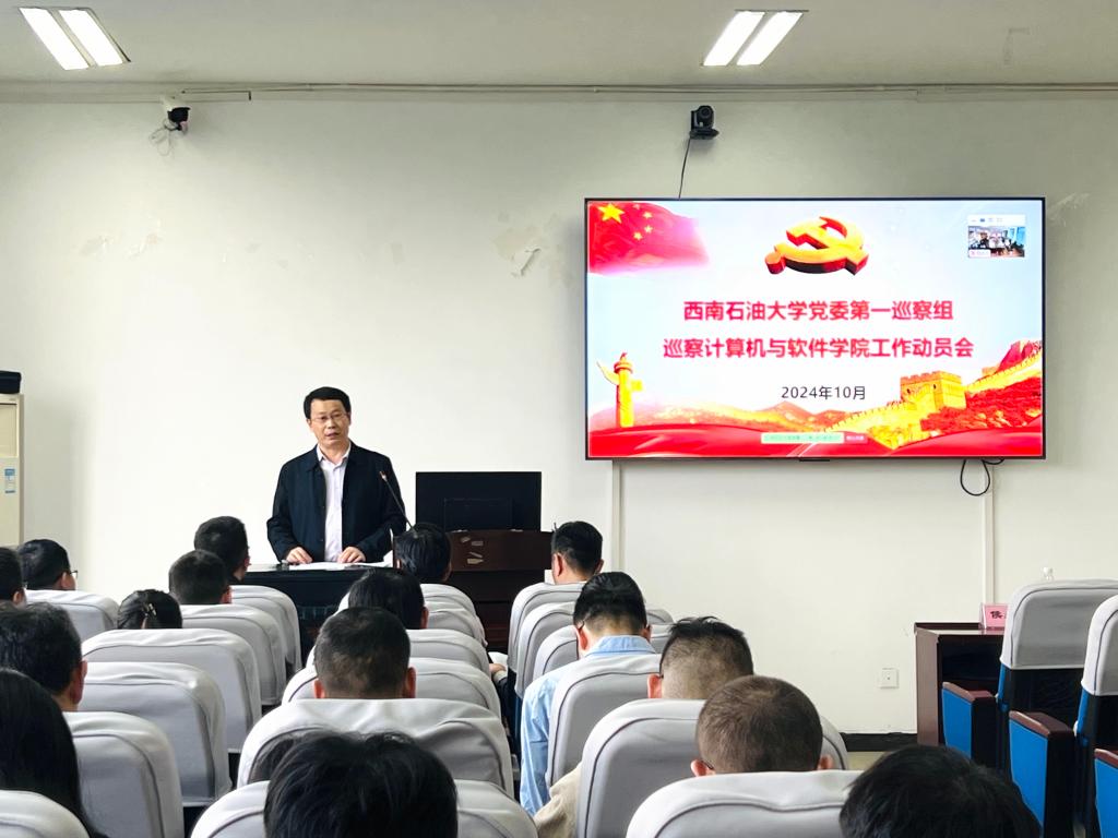 10月15日下午,學校黨委2024年下半年常規巡察計算機與軟件學院黨委進駐動員會召開。學校巡察工作領導小組領導、駐校紀檢監察組副組長、校紀委副書記侯永剛,石油與天然氣工程學院黨委書記、第一巡察組組長曾明友、副組長魏納、巡察辦公室副主任肖斌及第一巡察組全體成員出席會議。會議由計算機與軟件學院黨委書記李澗松主持,計算機與軟件學院班子成員、全體干部職工和部分離退休職工代表參加會議。