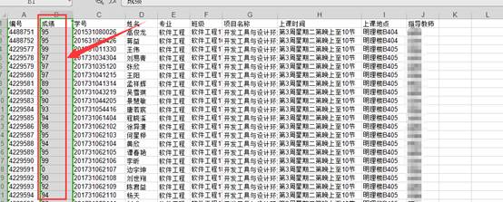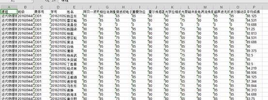 選擇學期、課程后就可以導出該課程下所有學生的項目和實驗課成績,如下: