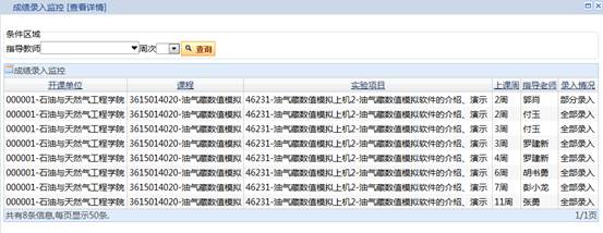 錄入情況分為:全部錄入,部分錄入,未錄入,都是以實驗項目成績提交做為判斷依據的,只有該課程下所有課序號的實驗項目成績都提交了,上圖會顯示“全部錄入”。