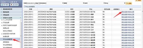對于已經提交的實驗項目成績可以進行修改,如下: