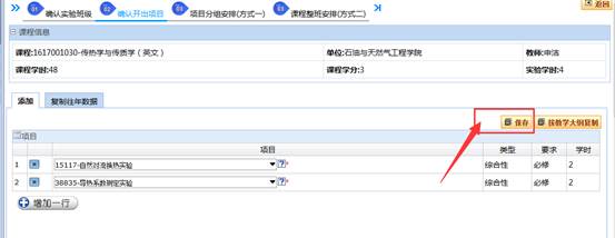 這種情況則需要根據實際情況修改項目基本庫中對應項目的實驗學時,然后回到“確認開出項目”頁面進行保存即可。