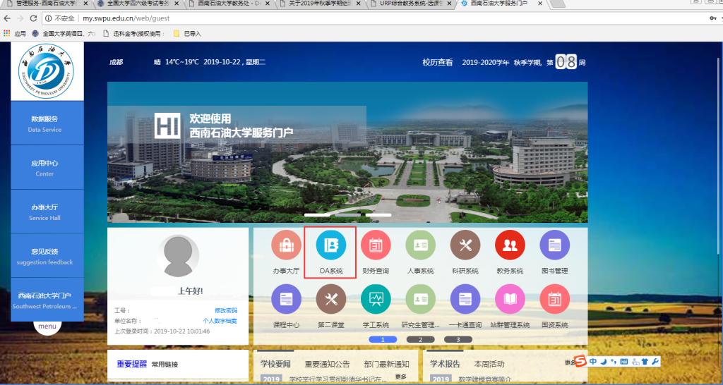 第一步:任課教師登錄 “服務門戶”,進入OA系統;