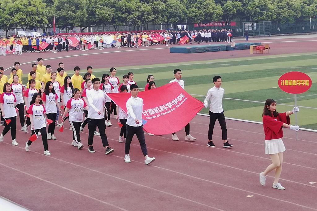 伴隨著運(yùn)動(dòng)員進(jìn)行曲的響起,國(guó)旗方陣和各學(xué)院代表方陣陸續(xù)進(jìn)場(chǎng)。其中計(jì)科健兒們步伐矯健、學(xué)子著裝統(tǒng)一、精神抖擻,邁著整齊的步伐走過(guò)主席臺(tái)接受檢閱。電腦前,他們手指飛揚(yáng),用一行行代碼引領(lǐng)著未來(lái)的方向;運(yùn)動(dòng)場(chǎng),他們奮勇向前,用矯健的身姿彰顯著青春的希望。