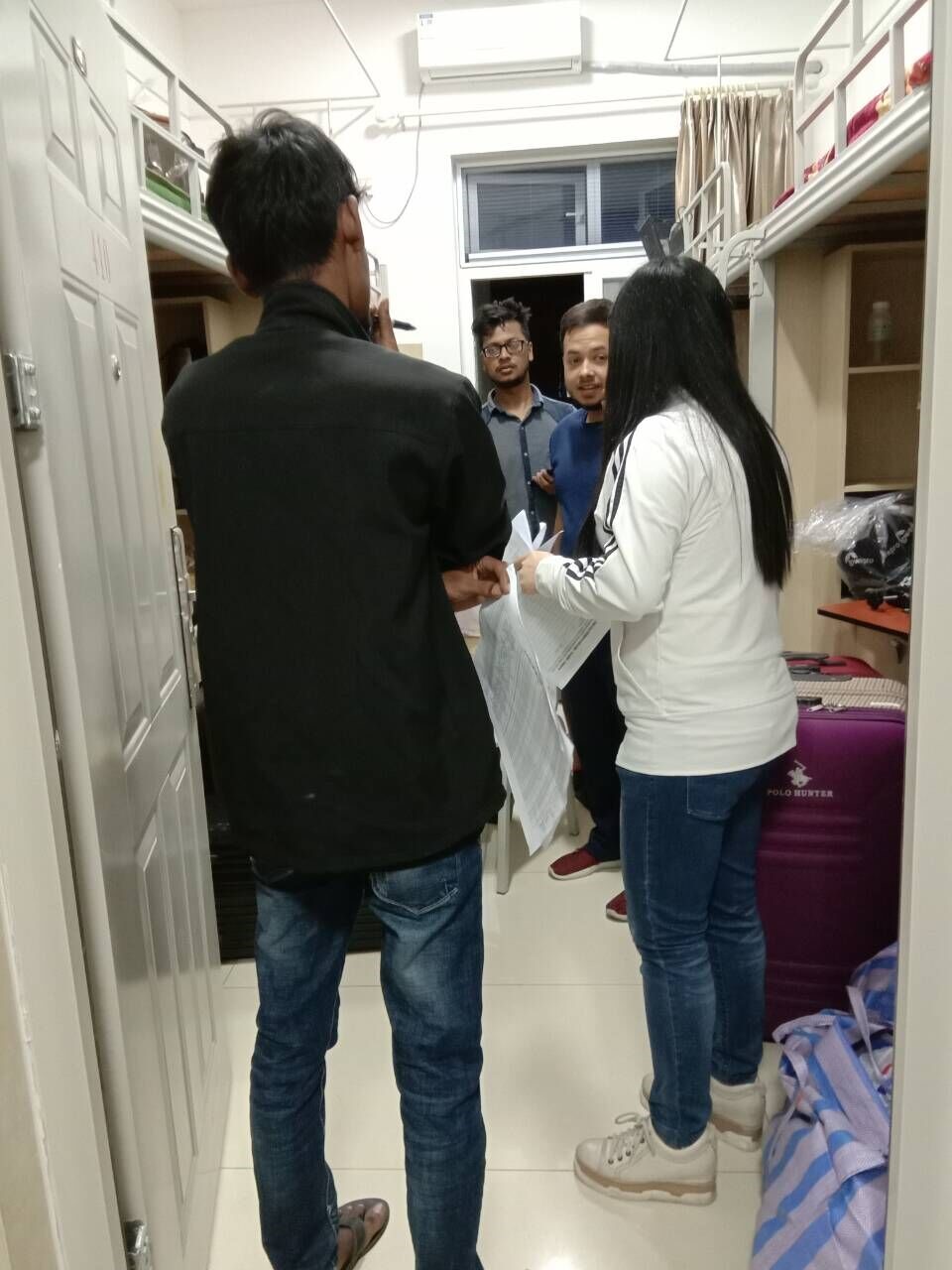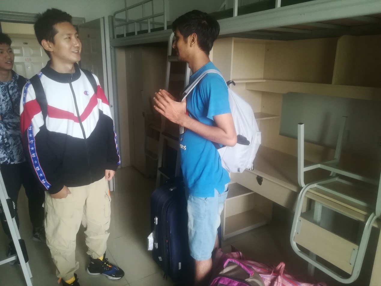 隨后,留學生兼職輔導員到新寢室進行了走訪,和各位寢室同學進行了交流,并提醒他們盡快制定寢室公約,努力營造良好的生活環境。