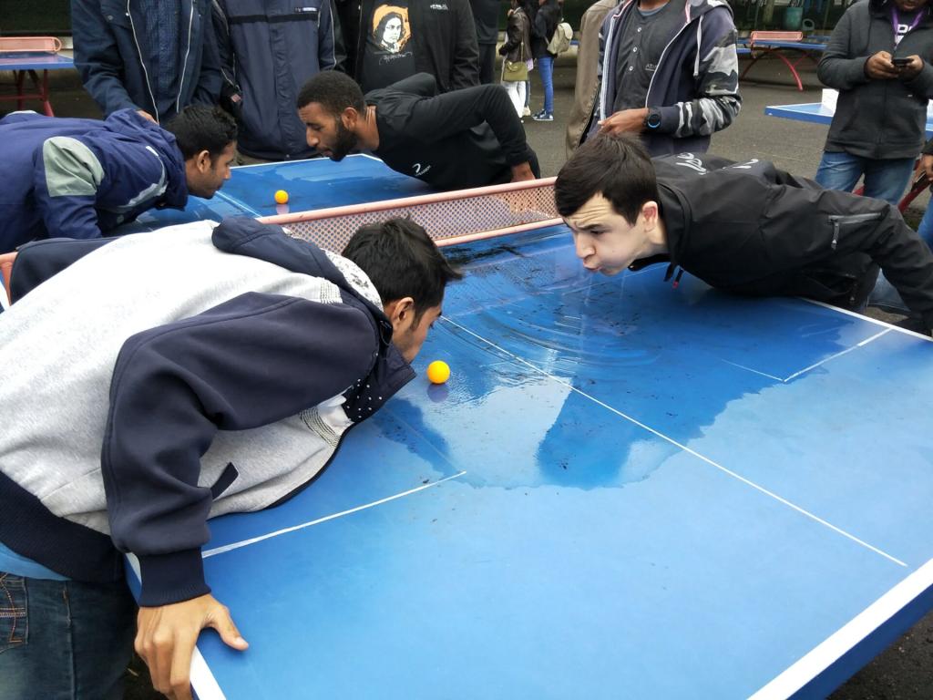 活動開始前,主持人簡單介紹了此次活動的內容。此次活動一共包含三個有趣小游戲:“氣吹乒乓球”、“水中乒乓球”、“筷子傳遞乒乓球”。每個小游戲開始前,主持人均一一講解游戲規則并做示范。活動過程中,同學們賽況激烈、氣氛融洽,競技體育的懸念讓活動變得更加精彩。參與者們在游戲過程中積極爭取,不到最后一刻絕不放棄的體育精神深深感染了在場的每一個人。整個活動現場不時傳出熱烈的喝彩聲和歡呼聲,引來了許多同學駐足觀看。活動中的游戲有使用“筷子”等作為道具,激發了同學們的興趣,提高了他們的積極性,也向國際學生展現了中國文化,整個活動寓教于樂,讓他們在玩游戲的同時感受到中國文化的魅力,融入到中國文化的環境中來。