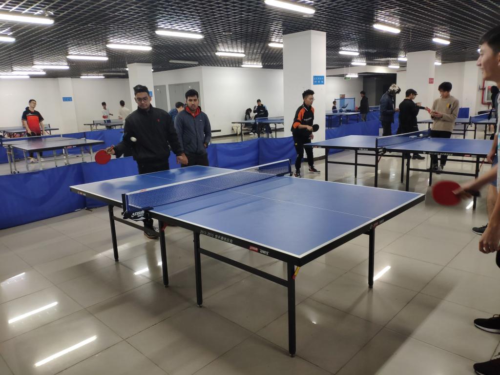 為了進一步培養國際學生對乒乓球運動的興趣,促進中國學生與國際學生的文化交流。11月16日晚7點,計科院學生乒乓球交流學習活動在藝術大樓乒乓球場地舉行,國際學生兼職輔導員陳思、國際學生以和2019級中國學生參與了此次活動,活動由黨委學生工作部 (處)主辦,計科院2019級計科類8班和校乒乓球協會承辦。