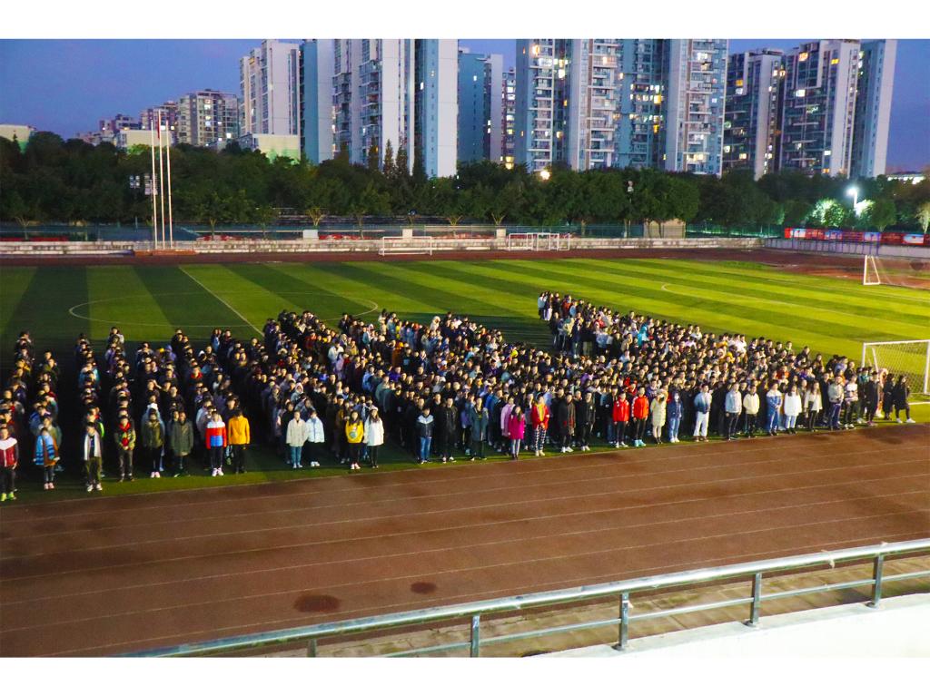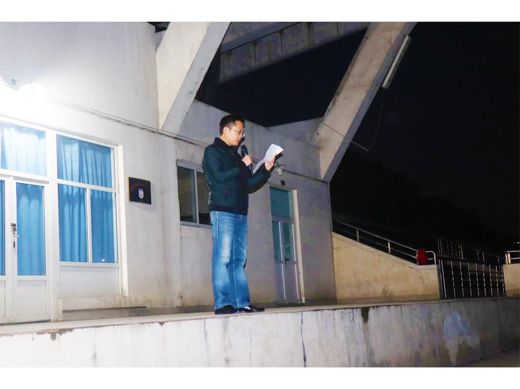 6時40分,計科院師生們在一期操場列隊完畢,盡管天氣寒冷,大家仍然行動迅速、隊列整齊。國旗護衛隊高舉國旗,合唱《歌唱祖國》迎面走來。