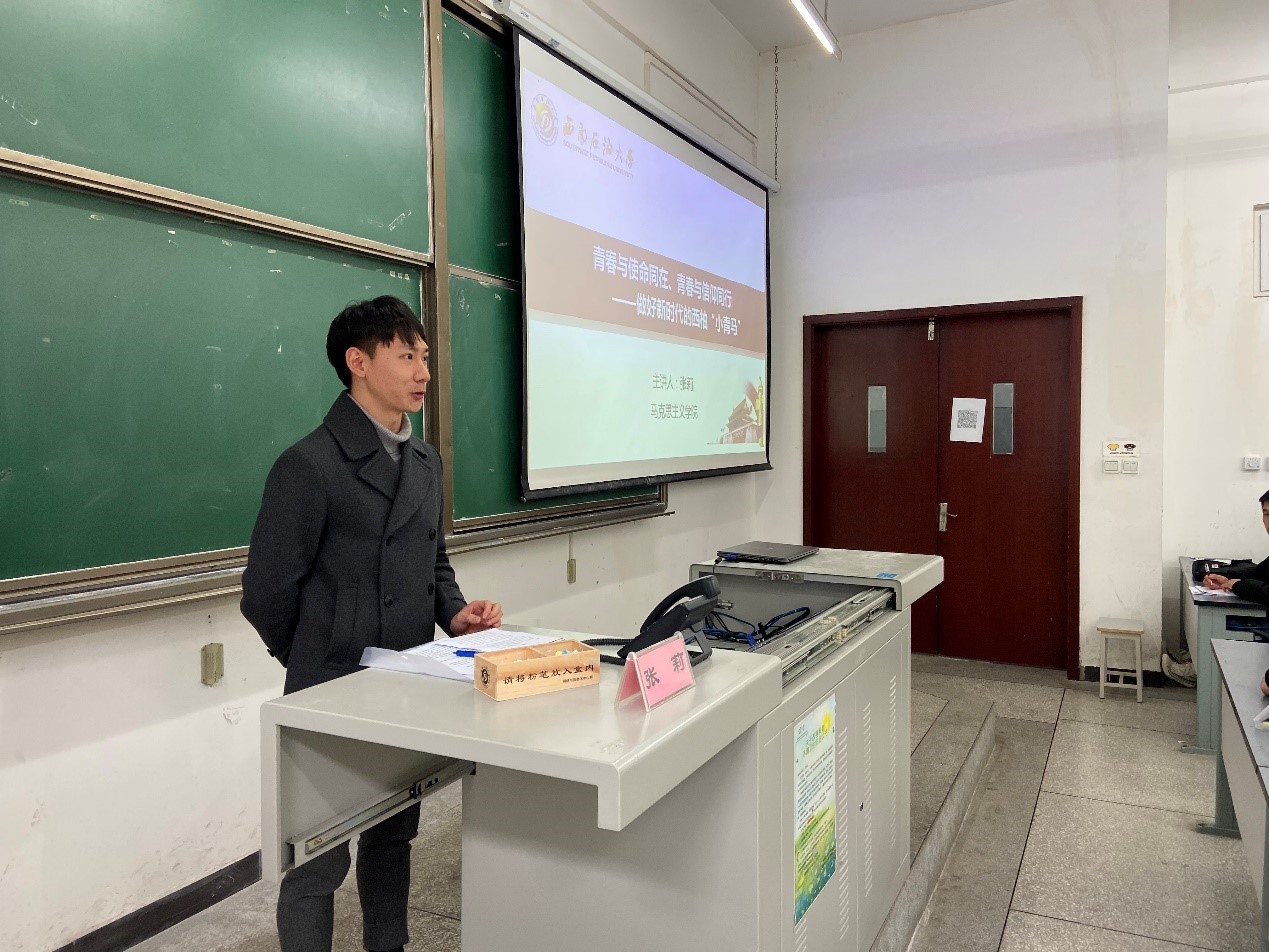 最后,在課程接近尾聲的時候,張莉老師表達了對青年一代的希冀和期待:生逢其時,重任在肩,廣大青年擁有廣闊的發展空間,承載著偉大的時代使命,祝愿在青春的舞臺上,大家能都勇擔時代重任,做時代的弄潮兒,為中國特色社會主義的建設貢獻自己的一份力量。