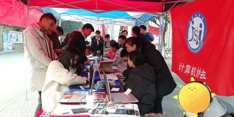 2019年12月15日計算機科學學院計算計算機協會在一食堂外舉辦了電腦義診活動。在活動的三個小時中,計協各會長及理事們為有需要的同學們解決了電腦出現的問題,還為同學們進行了重裝系統,考試系統安裝,電腦拆機除塵,office2010辦公軟件的安裝等等。