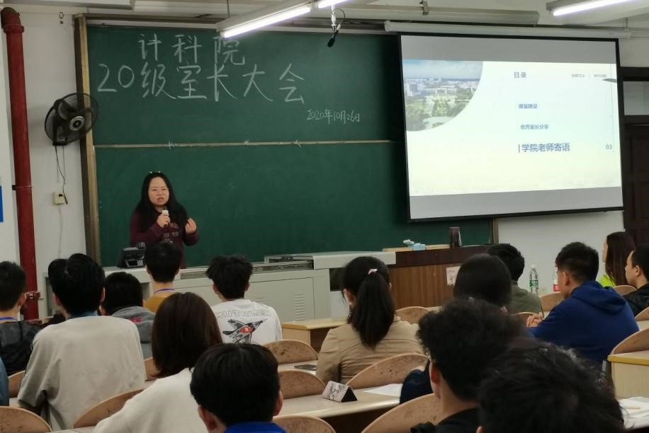 10月26日晚19時,“計科院2020級新生室長大會”在思學樓A411教室成功召開,大會由民管會主辦,民管會部長戴欣怡主持,計科院輔導員陳思出席,2020級全體寢室長參加了此次會議,本次大會的圓滿完成標志著2020級新生寢室工作的正式開始。