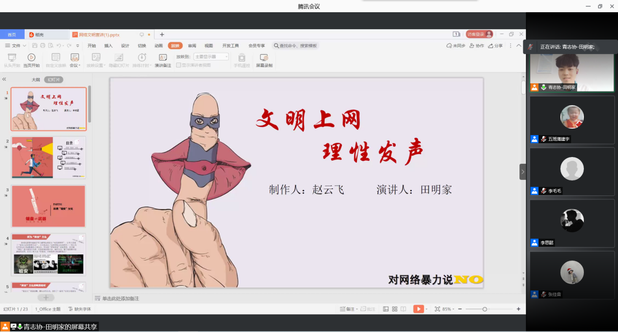 這次的活動完美地詮釋了“網絡是我們共有的空間,我們有責任讓它變得更加美好”,同時也豐富了大家的課余學習生活。計科院青志協希望通過“網絡文明”主題宣講這一活動,讓各位同學能夠自覺加強個人素質的提升,拒絕網絡暴力,共同創造一個綠色的網絡環境。