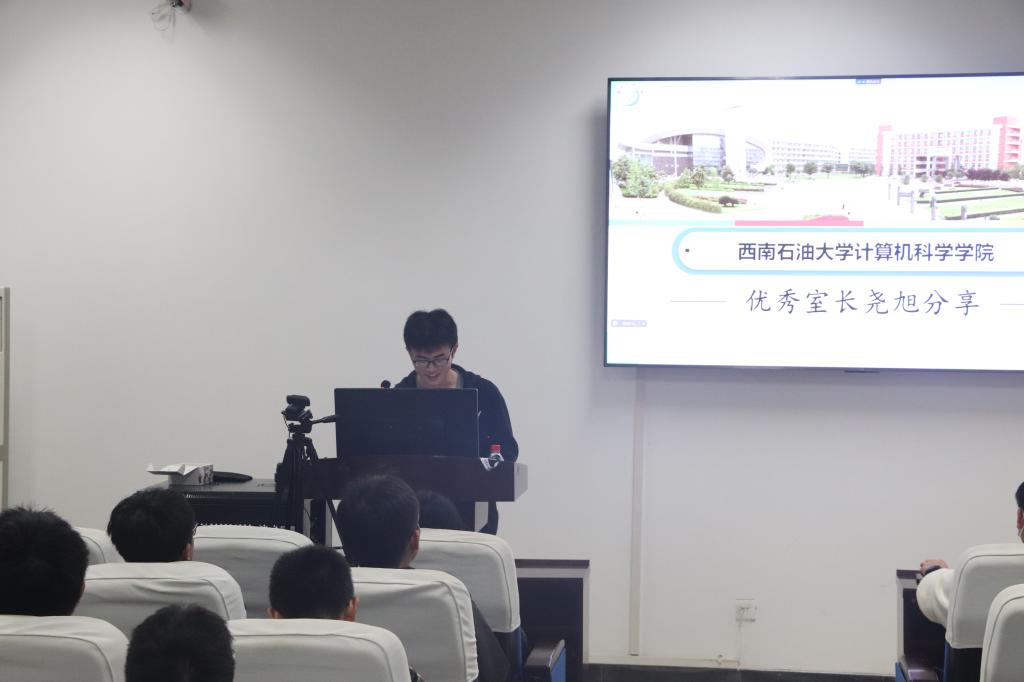 大會邀請了學長堯旭給新生分享自己作為優秀室長的經驗與建議。堯旭講到,寢室是大學生活的重要部分,保持寢室衛生與維護寢室紀律能為學習創造更好的環境,因此,宿舍文明建設是每位同學的責任與義務。