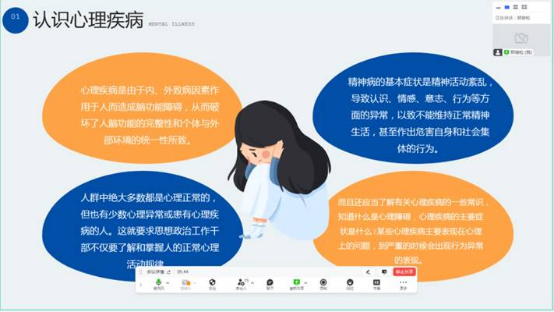 首先,在計科院心理服務站指導老師—鄭俊松老師的引導下令同學們認識了心理疾病,同時還使同學們明白了精神病與心理疾病的區別,同時使得同學們深知心理疾病的危害。