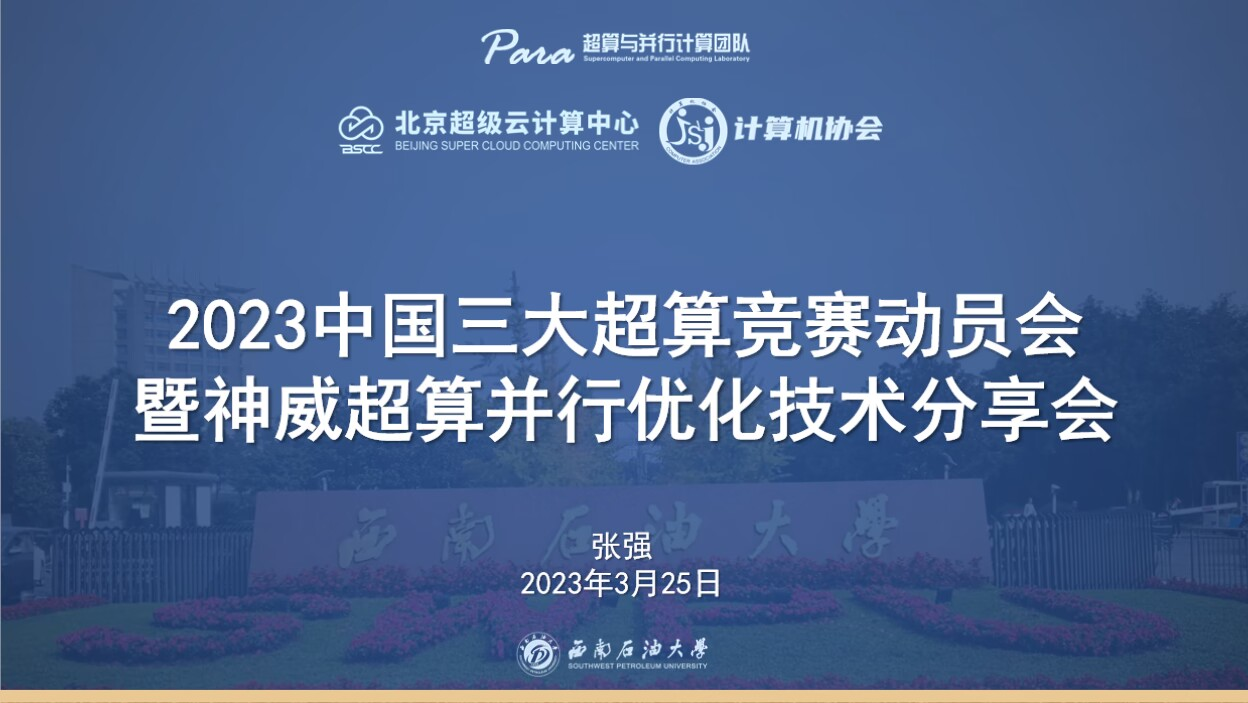 2023年3月25日晚,由超算與并行計算團隊主辦,計算機協會與北京超級云計算中心聯合協辦的“2023中國三大超算競賽動員會暨神威超算并行優化技術分享會”在線上順利開展。