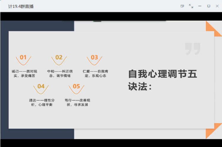突如其來的疫情,可能給很多學生的心理造成了一定的影響,為進一步提高大學生心理素質和心理調節能力,增強心理保健意識,促進大學生心理健康成長,讓同學們對自己的心理健康有一個全面客觀的認識。2020年05月17日,計算機科學學院2019級4班在劉忠慧老師的帶領下,開展了以“疫情下大學生心理健康”為主題的線上班團活動。